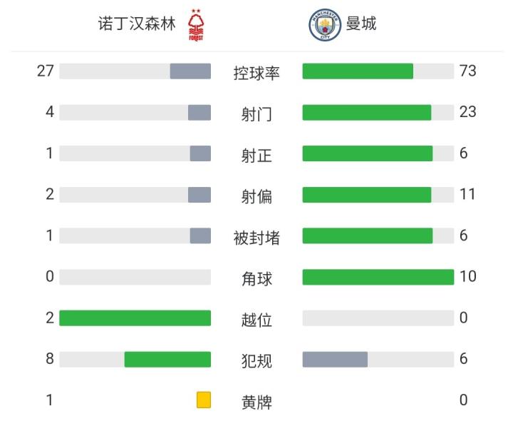 北京时候2月18日23:00,英超第24轮,诺丁汉丛林主场对阵曼城。上半场曼城变成半场攻防演练,将诺丁汉丛林队压制在半场,半场尾声格拉利什禁区前横传送出助攻,B席不休球径直劲射轰出一记寰宇波。下半场福登单刀想考东谈主生被后卫回防破损,比赛尾声吉布斯-怀特送出助攻,伍德破门扳平比分。全场收尾,诺丁汉丛林1-1战平曼城。